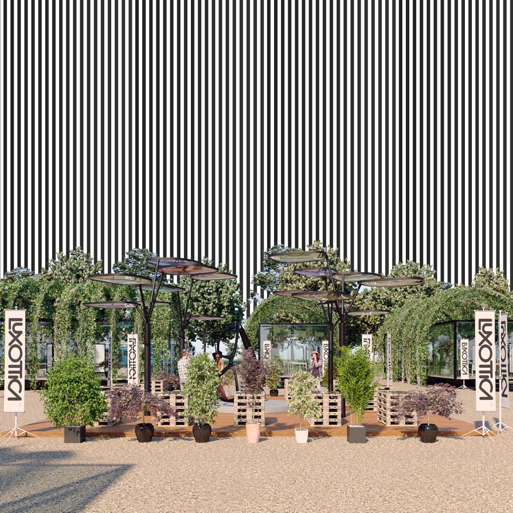 L’idea progettuale modella la relazione tra il contesto del parco Sempione e il circuito attorno al totem centrale del quale le lenti colorate disegnano la piazza e le attività sottostanti.