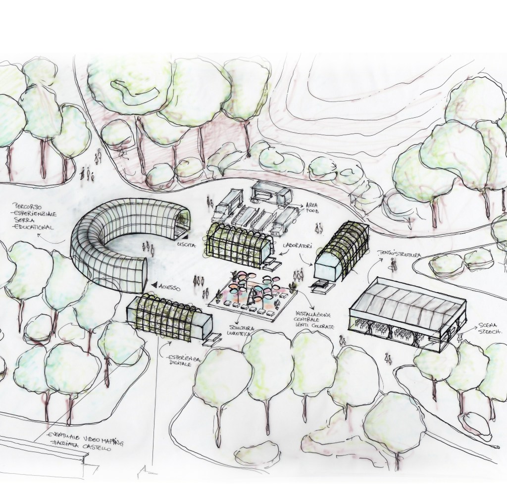 Nato dalla necessità di generare un percorso esperienziale fluido per circa 3’000 persone, le forme diventano l’involucro che avvolge la promenade educativa.