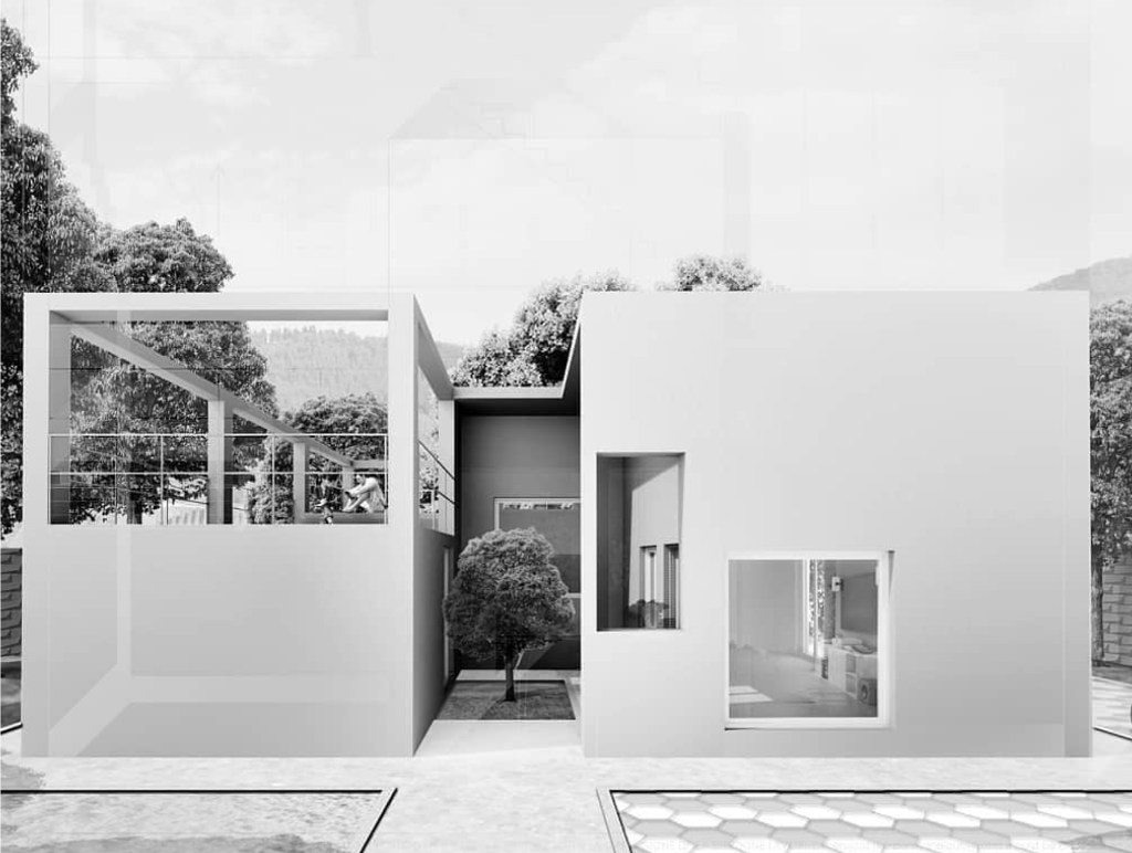 A nine square grid plan was developed in different floor levels embracing the house functions and the open spaces. Proportioned with a golden ratio between void & volume, the facade tries to invite nature in a vertical momentum.